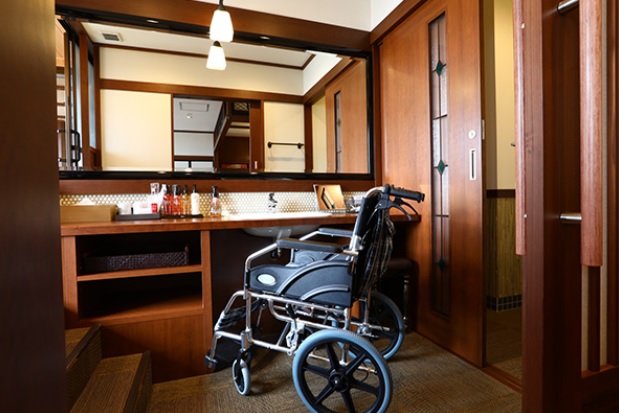 車いすをご利用のお客様や、ご高齢のお客様、親子三世代で安心して滞在して頂けるようユニバーサルデザインの客室が用意されています。