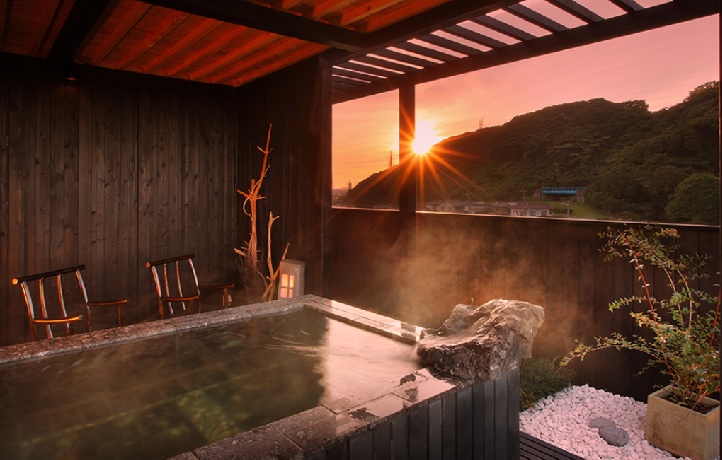 おいしいお料理を心ゆくまで楽しんだら、展望貸切露天風呂で静かな時間を過ごし、ゆっくりを夜を過ごす。