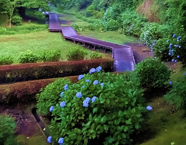 木道には初夏に紫陽花が咲き、ホタルが飛びます。秋には木道の紅葉が色づき君津の豊かな自然を感じることができる癒しの広場となっています。 ※一部の区間は、崩落の危険があるため立入禁止となっていますので、ご注意ください。