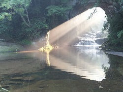 上記画像のような写真は、3月~4月上旬や9月~10月上旬 日の出から午前中の間、洞窟奥の右側から日が差し込み、日が昇るにしたがって光の差し込み具合が変化していきます。