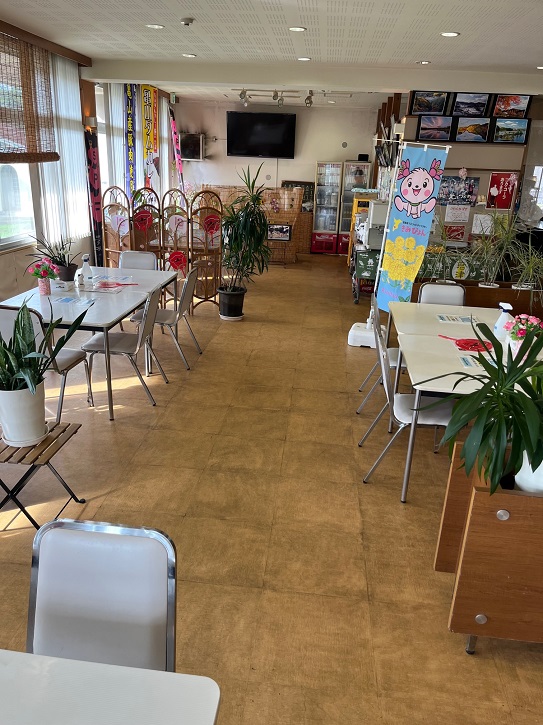 亀山観光案内所「亀山やすらぎ館」の中にありますので、亀山湖畔の散策の腹ごしらえ、小休憩に、ぜひお立ち寄りください